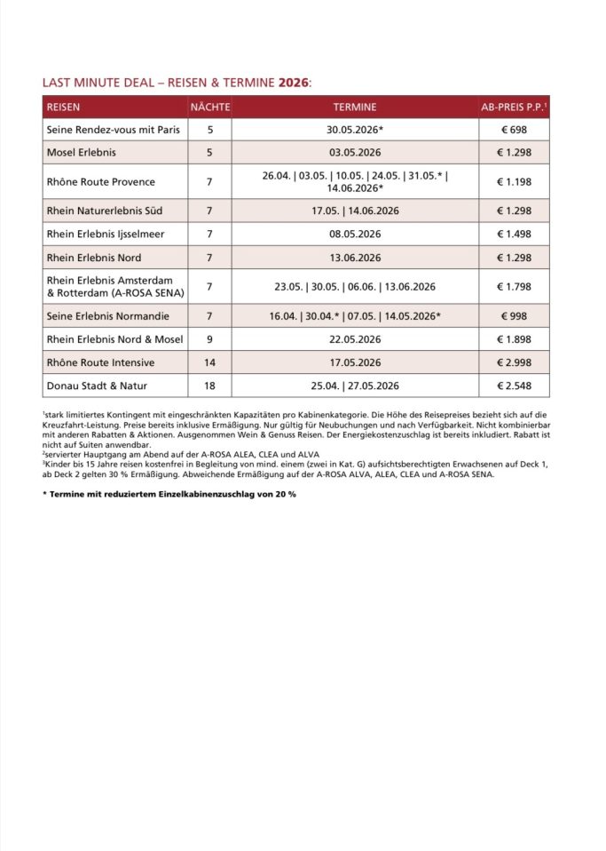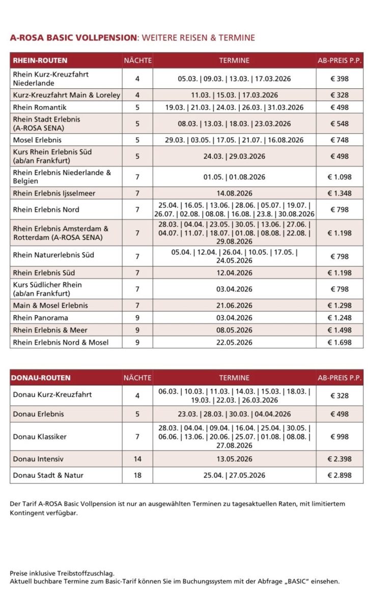 A-ROSA Flusskreuzfahrten bieten eine großzügige Flotte, die für jeden Reisenden ein einzigartiges Erlebnis schafft. Die Schiffe zeichnen sich durch hohe Qualität und stilvolles Design aus, sodass sich die Gäste während ihrer Flussreisen rundum wohlfühlen.