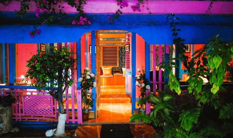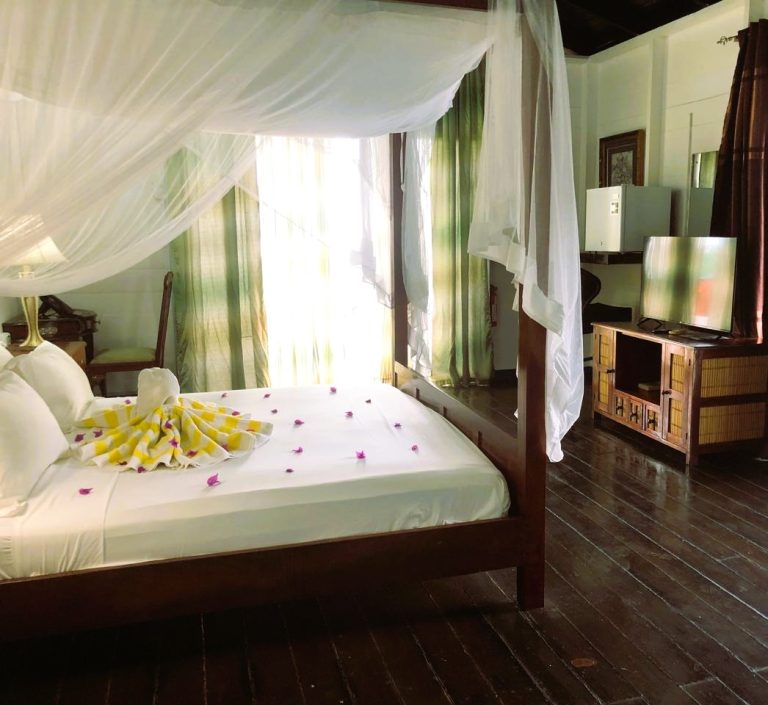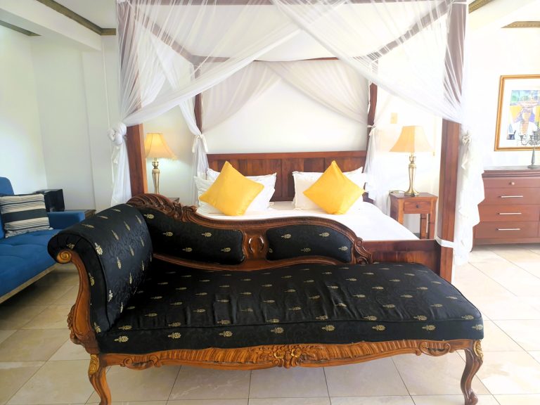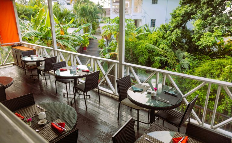 Das HALF MOON BLUE liegt eingebettet in Gärten mit Palmen, Bambus sowie Bougainvillea und unter dem Hügel der historischen Festung George.