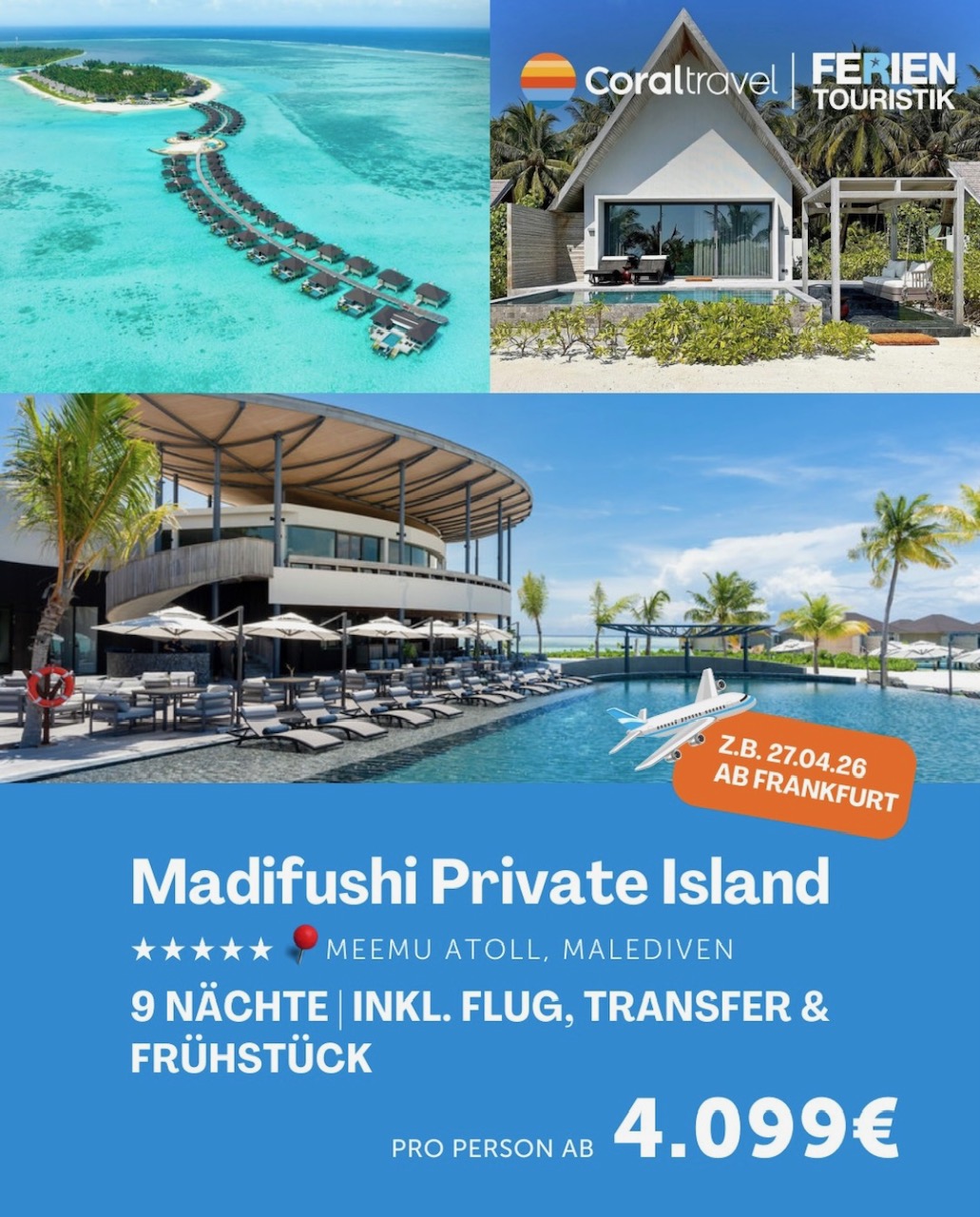 Neu eröffnet und exklusiv: Dieses All-Inclusive-Resort auf einer privaten Insel bietet elegante Suiten mit Meerblick, ein modernes Design und absolute Privatsphäre. Ein Highlight ist der eigene Flughafen auf der Insel – für eine besonders komfortable Anreise.